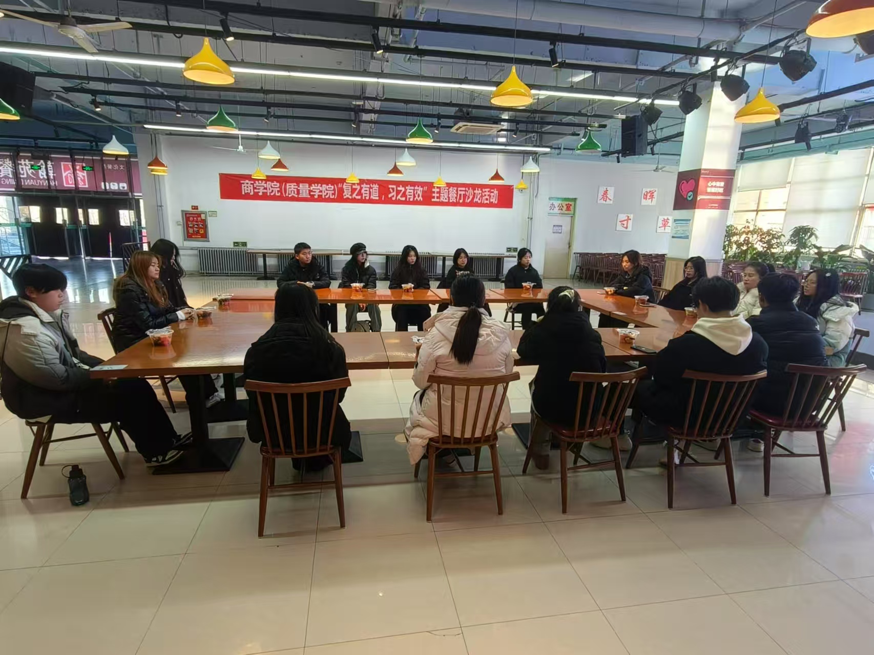 12月26日,555电影 于东校区翰苑餐厅二楼开展“复之有道 习之有效”期末备考主题餐厅沙龙活动,邀请2023级优秀学生代表甄佳慧、肖玉雪分享备考经验,学院辅导员韩亭亭、刘聪睿及2024级各班班团参加活动。