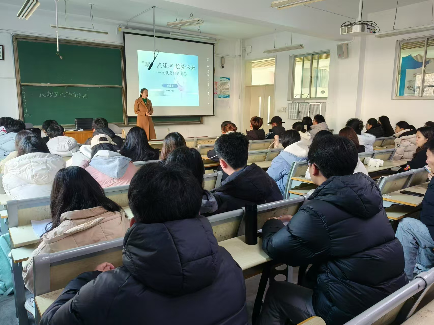 12月27日,555电影 于东校区1#301举办“职场领航”巡回宣讲活动,邀请药学院辅导员王秀平作《职点迷津,绘梦未来——成就更好的自己》主题报告,学院辅导员高鹏及2024级90名学生代表参加活动。