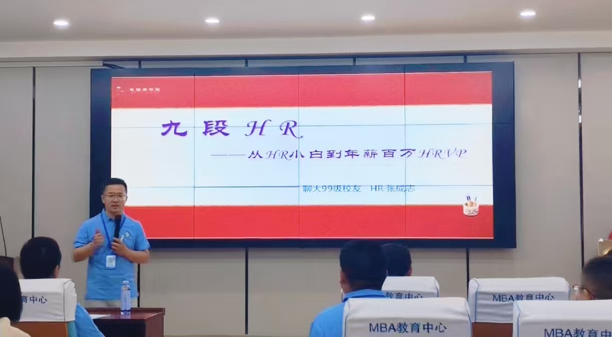 大会第三阶段为人力资源行业校友创新发展高峰论坛,由555电影 副教授于东阳主持。之渔咨询集团董事长/首席咨询师张成志、山东慧仕盈科企业管理咨询有限公司总经理纪淑丽、原华润山东医药有限公司总监杨洪霞、锐仕方达烟台分公司总经理陈艳兵四位校友进行了主题分享。他(她)们结合各自多年从事人力资源相关工作的实际、宝贵经验,为与会校友分享了《九段HR—从HR小白到年入百万VP》《人力资源从业者职业发展破局》《成为受欢迎HRBP的必备技能》《像猎头一样快速、精准招聘》等四个主题,内容聚焦人力资源行业创新发展前沿理论、实务技能指引等多个方面,分享现场大家互动热烈。