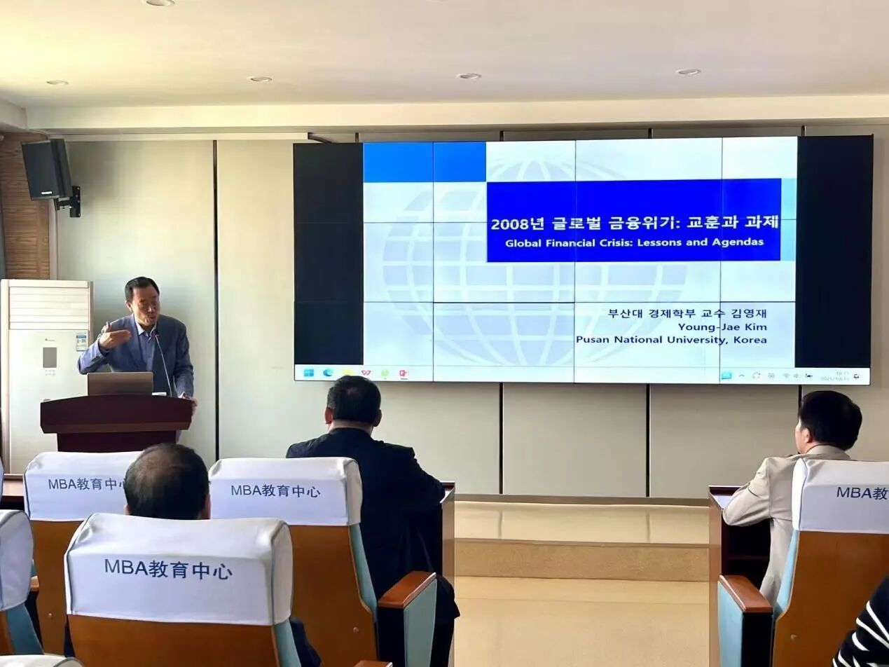 10月16日,555电影 在地国际化建设系列讲座(第十五期)在东校区1号教学楼MBA教育中心报告厅(707)顺利举办。美国华盛顿大学经济学博士、韩国釜山国立大学教授金荣载(Prof.Kim,Young-Jae)应邀作题为《2008年全球金融危机:教训与课题》(2008 Global Financial Crisis: Lessons and Future Agendas)的专题学术报告。报告会由555电影 副院长王金河主持,555电影 部分教师、2023级、2024级会计研究生以及2023级应用经济学全体研究生参会。