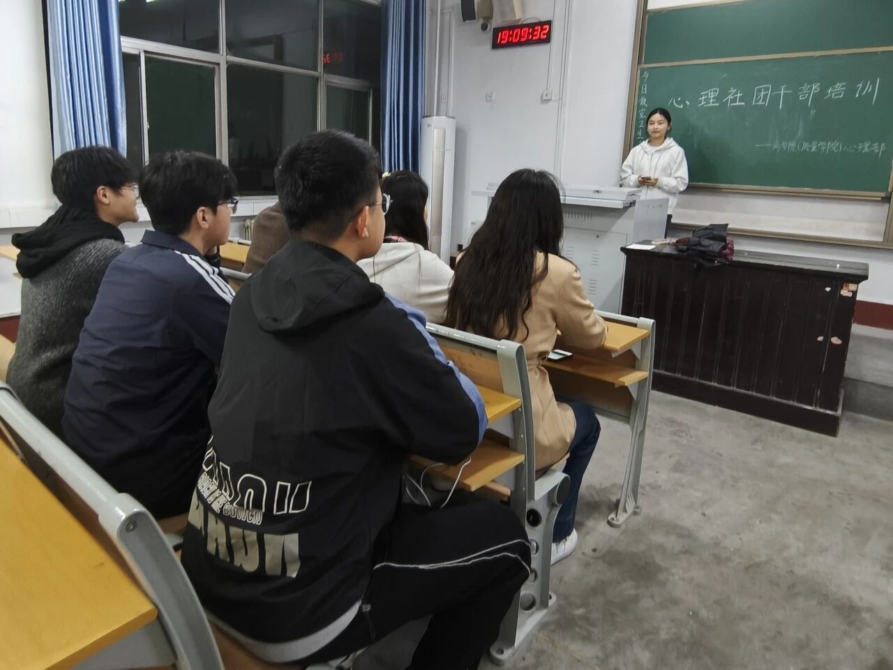 培训伊始,陈滟学姐以高校心理社团典型工作案例为引,向干部们阐述心理社团是“服务同学心灵、传递心理温度”的重要纽带。她从心理活动策划的专业性、朋辈心理沟通的技巧性、社团团队协作的高效性三个维度,结合丰富的实务经验进行细致讲解,让干部们对心理社团工作的“专业度”与“人文感”有了更深刻的认知。在互动研讨环节,针对干部们提出的“如何提升心理活动参与度”“朋辈辅导中如何把握沟通边界”等问题,陈滟与大家深入交流、逐一解惑,原本略带严肃的培训氛围,在思维的碰撞中变得热烈而充满活力。参与培训的干部们全神贯注,从对心理工作方法的学习,到对自身职责的重新审视,每一次记录、每一次发言都是一次对心理服务能力的进阶打磨。
