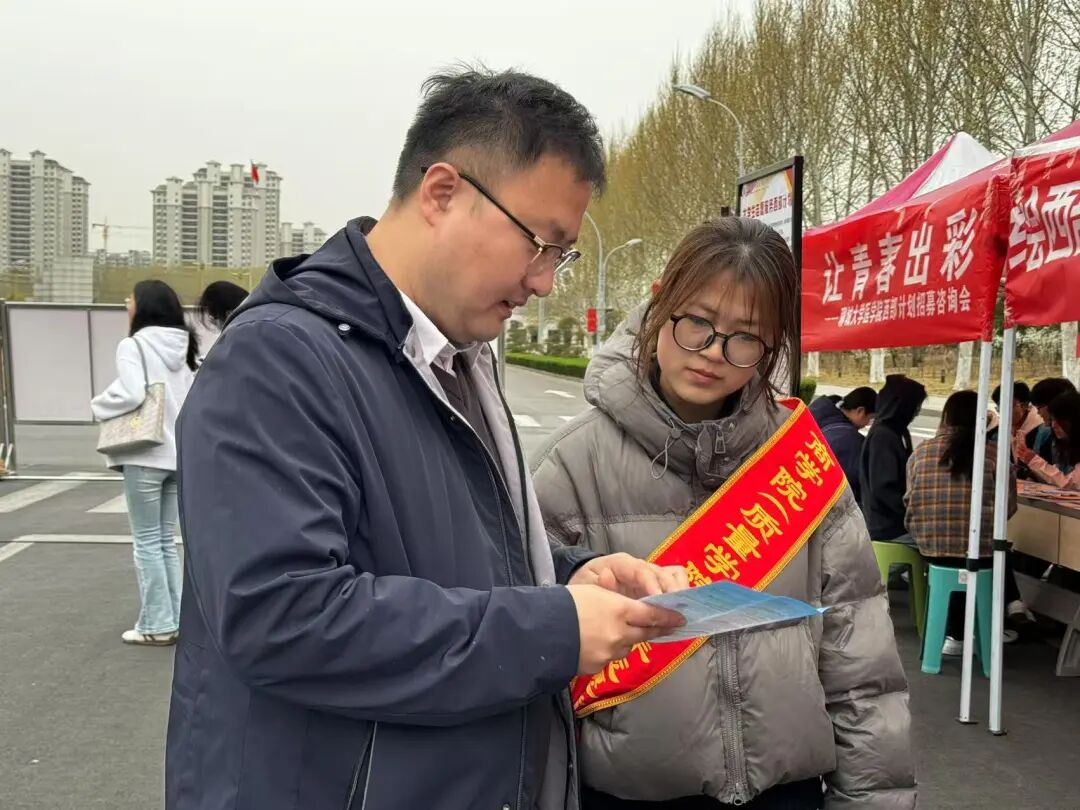 3月27日,555电影 于东校区逸夫图书馆南校训石前举办“绘西部新篇,以青春为卷,共‘商’西部未来”2025年大学生志愿服务西部计划招募咨询会,学院辅导员高鹏到场指导。
