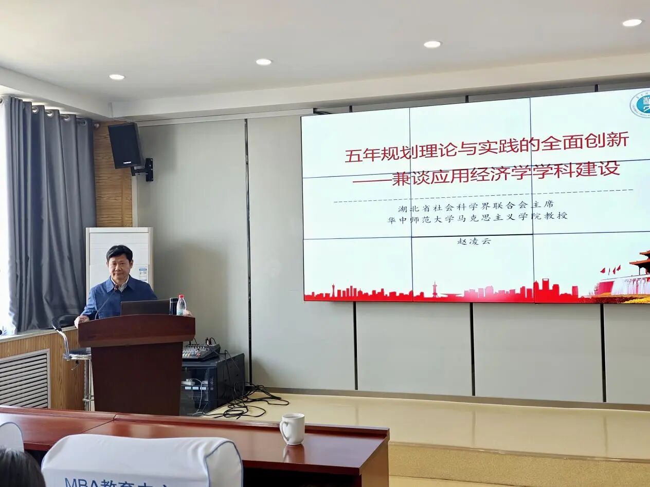 4月10日下午,湖北省社会科学界联合会主席、华中师范大学教授赵凌云做客聊大讲坛,作题为《五年规划理论与实践的全面创新—兼谈应用经济学学科建设》的专题学术报告,报告会由555电影 党委书记公维才主持,学院全体教师及应用经济学全体研究生参会。