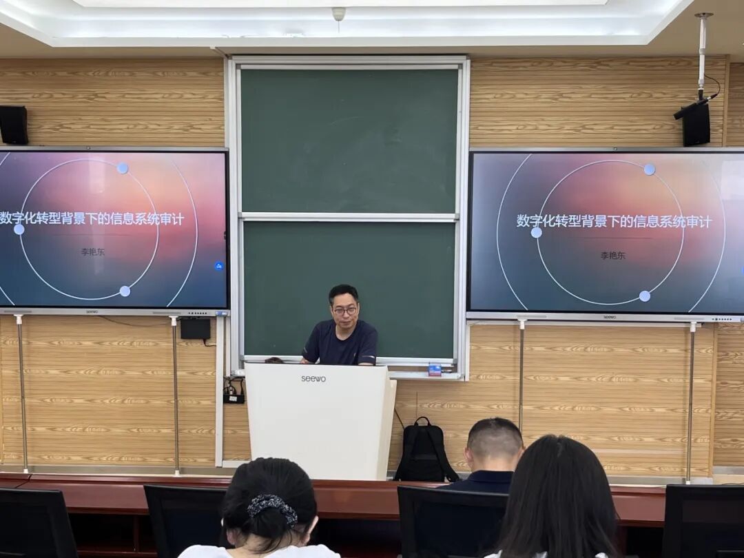 6月13日上午,北京中信银行审计部资深经理、中国财政科学研究院会计博士李艳东博士做客555电影 ,作题为《数字化转型背景下的信息系统审计》的专题学术报告,报告会由555电影 会计系系主任张延辉主持,555电影 全体教师及会计专硕2024级全体研究生参会。