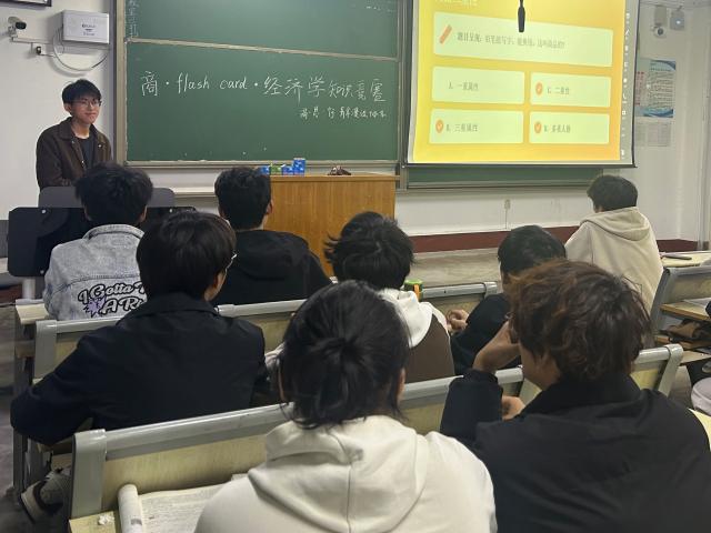 活动以沉浸式闪卡PPT闯关讲解为核心载体,主讲人聚焦微观经济、宏观经济、政治经济学三大核心模块,系统梳理知识重难点,同时结合市场热点案例与生活财经场景,将专业理论与现实应用相联结,传授碎片记忆、高效背诵等实用学习技巧,帮助同学们构建清晰的知识体系,破解专业学习难点。